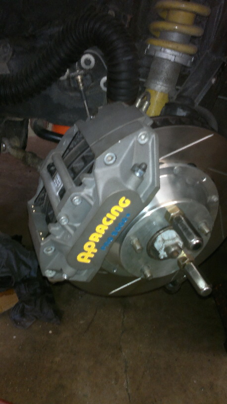 So we fitted AP PRO5000+ calipars with 36mm x 330mm AP Rotors, custom brakes, floating hats and redid the brake ducting. Excellent stopping power and no brake fade.