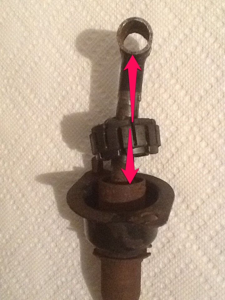 The upper portion on my shifter has come lose from the bottom rod section that the pivot ball is on. Thus voted kaput by woody. But he did say if I found a way to put a pin through it etc. it be usable. I just need to know the measurement as to what gap is originally suppose to be at. The arrows will explain the distance I need measured. Thanks guys...