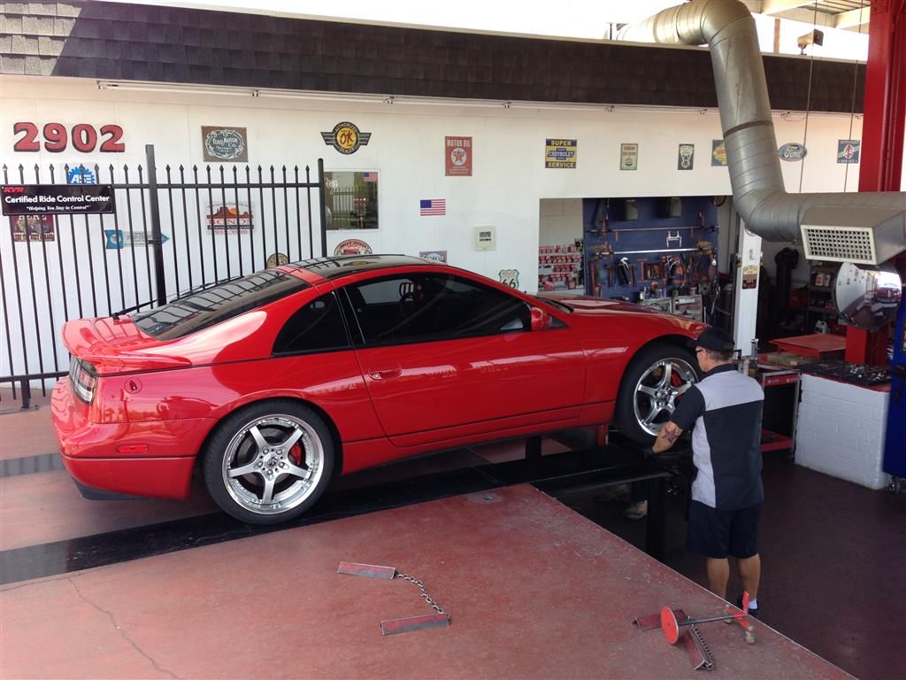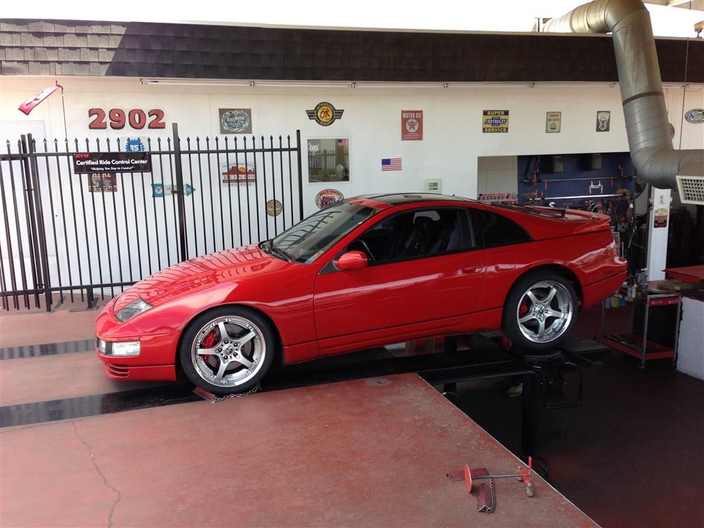 Getting the front and rear aligned yesterday for the drive to Branson Z Fest... all new SPL suspension and Powertrix coilovers. Everything is in factory spec :)