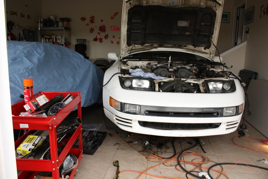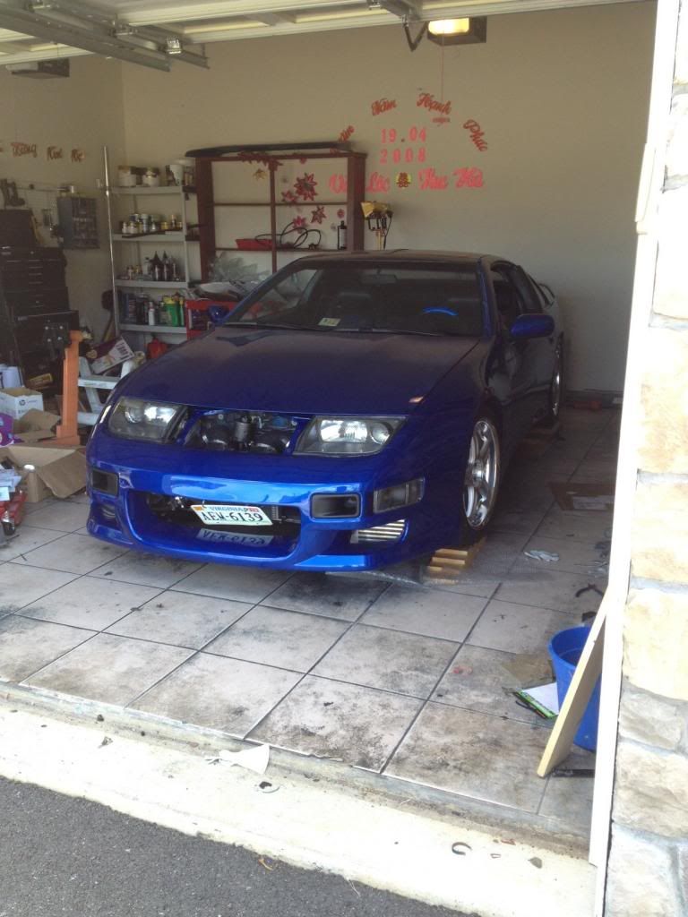 Well, finally my car is back on the road after 4 yrs of working on it, uncounted hours of labor . First of all, thanks to tt.net and all of you who had helped me to get this project done. I am not going to write a lot , I don't call this a build thread either because I am suck at writing. Second, I apologize for poor phone quality pictures. 4 years ago, my friend and I drove 5 hours to pick up this 1990 twin turbo z. Not knowing anything a Z32 , just love the way it looks. Knowing that it had a blown turbo, the owner offered a replacement turbo with the sale .Silly, I thought that replacing turbo on this car is just a one hour job. so I got the car and I made it home the same day. After two days, the car developed a rod knock. This is when I discovered TT.NET , I was so happy that I have found so much information about this car on the forum, so I decided to rebuild this car all myself . Here is she sitting on jack stands after 2 days of ownership