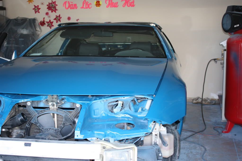 quite some orange peel, and I did not like this blue at all. We I decided to do it all again, this time I picked a darker blue , Daytona blue (350z color)  for now I am ok with this color, just not so very happy :(