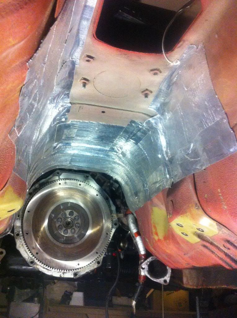 Definitely don't feel the heat as much as before, but I want to finish the rest of the trans tunnel. I got the cheap(er) just reflective stuff off of amazon - good up to 2000 F, or something like that. I used reflective duct tape around it just to make sure it doesn't go anywhere. Cleaned the surface pretty well too, if there is grease on there it wont stick for very long, if at all.