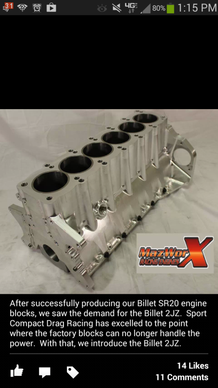 Billet aluminum 2jz block. Not to mention the plethora of aftermarket dual and even triple fuel pump setups.. That are all plug n play.