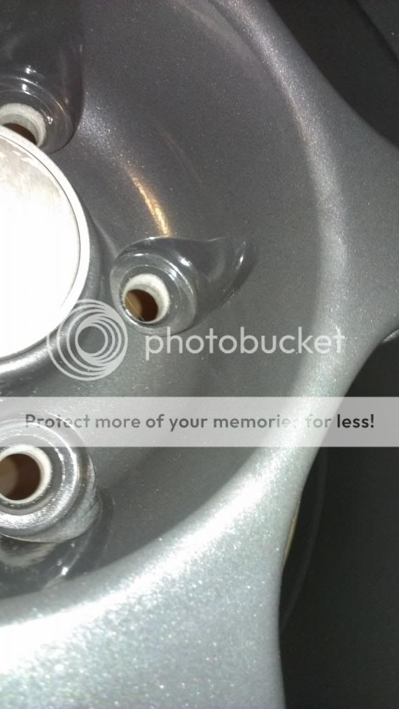 Got my wheels back from the powdercoaters recently, I thought they turned out well, but looks like they got some of the coating on the lug seat. Any ideas on how to get the surface leveled out? Also, I was going to pick up some new lug nuts, does Muteki make a decent product? I don't need anything fancy, just want a closed ended black set. And to the pics:
