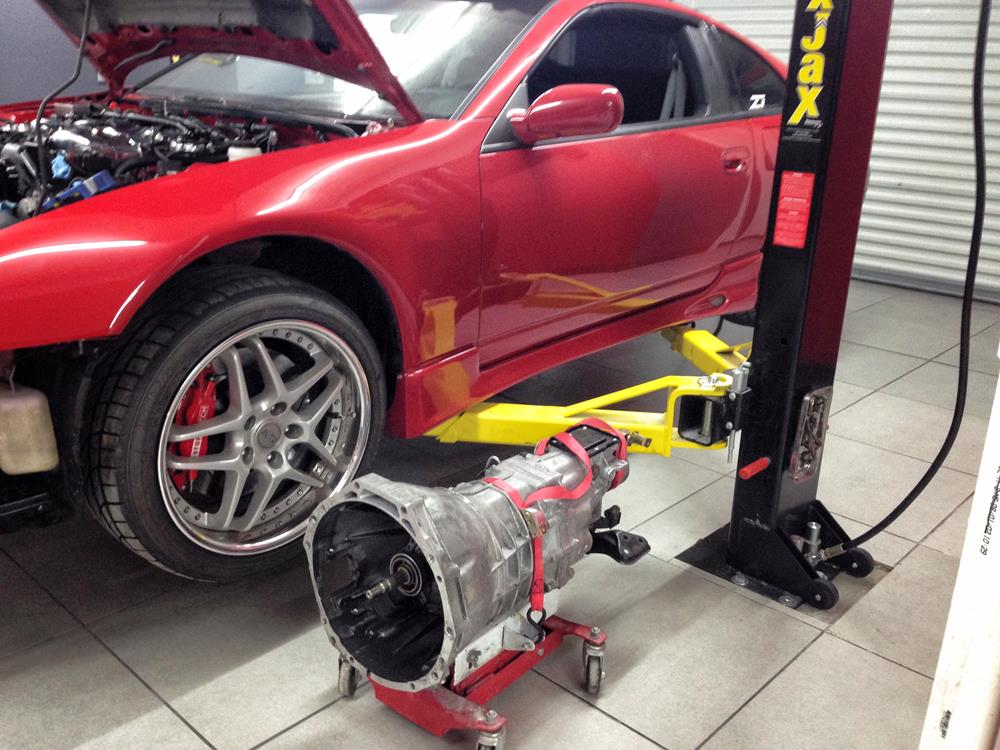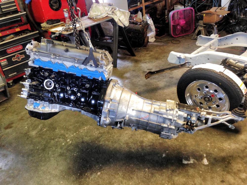 Helping a friend put a 2J + 370Z Trans into a 55 Chevy truck....
