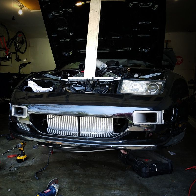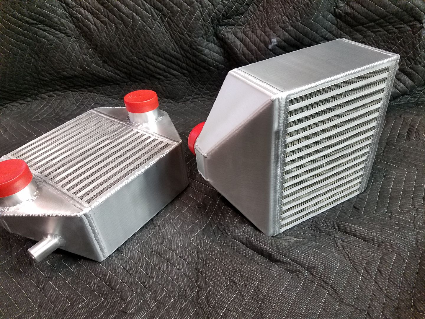 For those that don't have Facebook. I installed my new intercoolers made by Bell Intercoolers. Dimensions are 4.5" x 8" x 10 3/8" with 2.5" piping. Bigger than AshSPEC Massives and Z1 BA Intercoolers. These things are top notch quality and made in the USA. Intercooler piping will be a lot shorter having these intercoolers up front and will get a lot more airflow compared to the stock location.