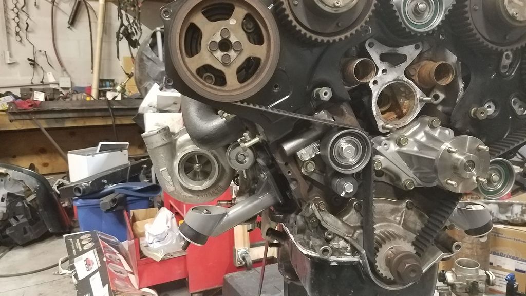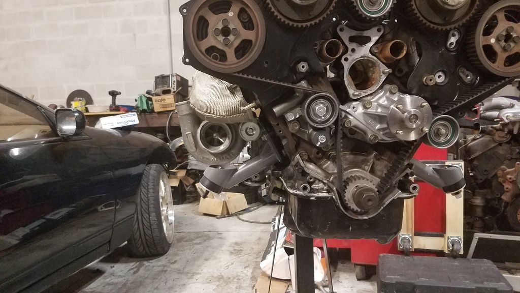 i know i don't post on here much. (probably 4 years ago was the last time) Just wanted to say what a truly great guy Ash has been to me, let alone the customer service i have received from the man. I bought his new manifolds and then had them ceramic coated here locally and they turned out phenomenal. Also JUST received his 2.5" charge piping and 2.5" inlet piping. My GT2871's should flow quite nicely and the quality just looks superb, better pictures will be taken soon, But for now, here's a few.. //still in the process of clocking the turbo's mocking up wastegate brackets. With the factory dipstick.