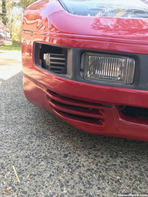 | Also i also took my NA bumper and made it a 'tt' But I had a bad TT bumper that I cut the vents out of and fiberglassed in. It came out great wish I had more pics for you, red brake caliper paint from advance auto is a close enough match for our red and sticks great. [ http://thewolfweb.com/photos/00534759.jpg ] [ http://thewolfweb.com/photos/00534758.jpg ]