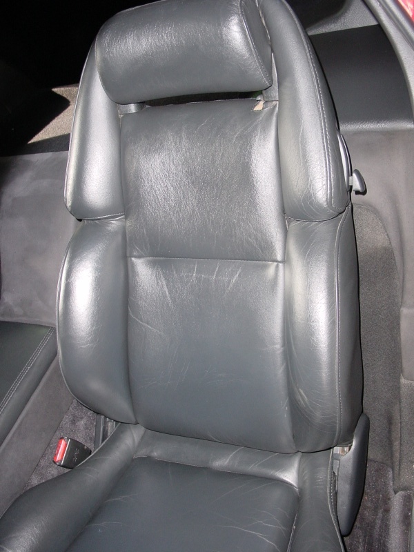 cleaning products she uses on her saddles (she is an avid equestrian) on the seats, and they look practically brand new. Here's the driver's seat: