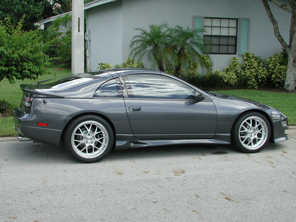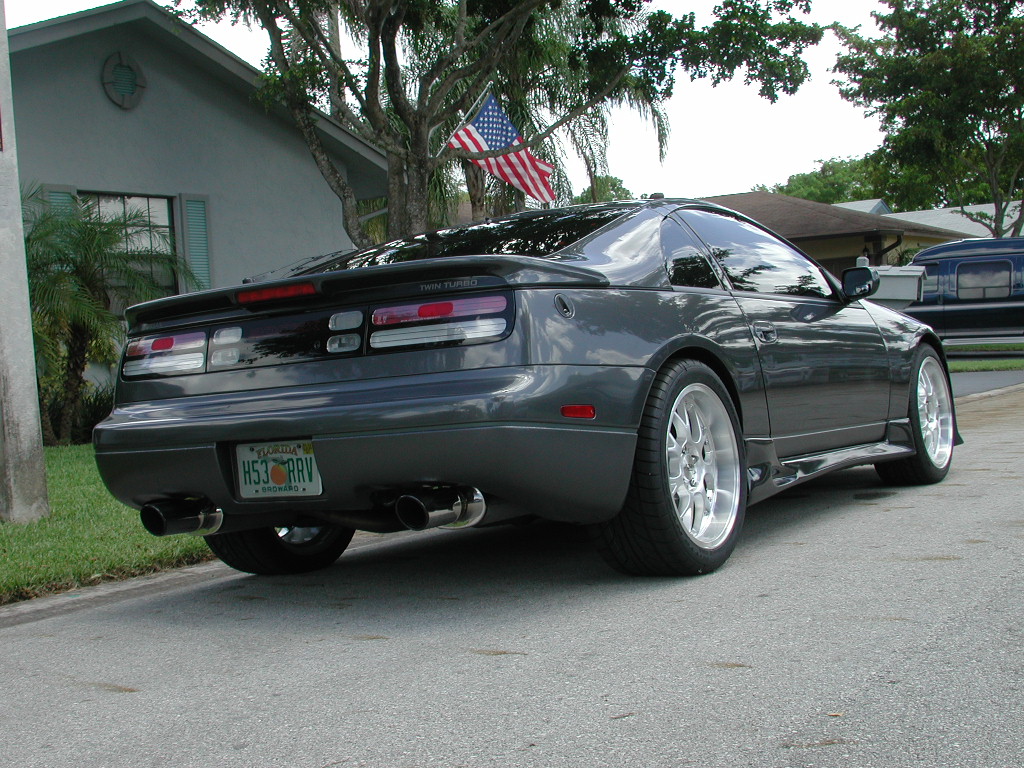 | and gave it a wash. Of course it's going to rain any minute, but I'm use to it down here in Ft Lauderdale. The tires are Nitto 555s in 235 and 285 variety. Fellow TT.net member ScreamZ hooked me up real good, so it was time to chuck the old skinny 225 and 265 combination. The 235s really protect the front lip. The 225s did not have the same feature as they are too skinny for the 8.5" width.. In the pics you can't really see the difference from before, but trust me, the car looks 100% better with more width and a tad bit less gap in the wells. Now the tires exceed the edge of the rim instead of being flush/stretched like before. Look at my sig and you can see some difference in the rears. At least I can. PS I know these pics look just like every other ones I've posted, but it so easy to push the car into the street and snap a few. I need to get my ass over to the beach so I can have a palm tree or something in the picture.