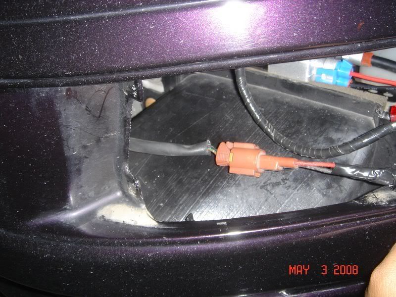 | Install is pretty easy. All you do is dremel out the back of the fogs where the original connector is and then use the provided grommet in the kits that I sell. You then put some female spade connectors on the plug that was originally on the fogs and you connect those to the ballast connector. From there, put your fog's back in and your done. I have had alot of people asking me how the install was on the fog's because they herd it was Hard to impossible to have H.I.D's in the fog's but this is proof on how to do it and that it is really not hard by any means.